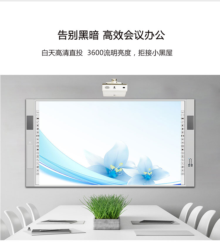 采用DLP激光光源,短距離可投射大尺寸,畫麵清晰,色彩真實,給學生更豐富的色彩展示,更清晰的畫麵